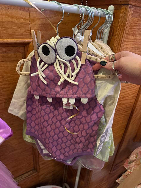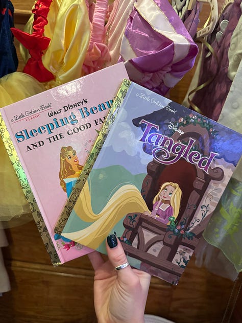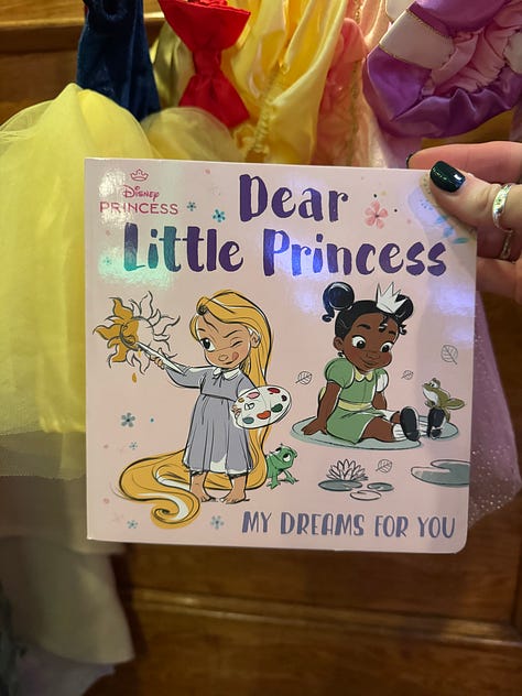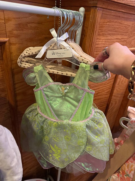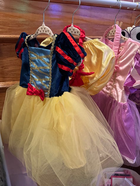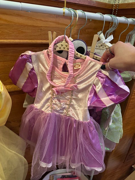 I found the Snow White, Tinker Bell, and Boo outfits — yes, I know Boo isn’t a princess, but I couldn’t resist — on Facebook Marketplace. I also had to order a dress of my sister’s favorite priness, Repunzel. I got each outfit in a different size to fit her baby girl at various stages.