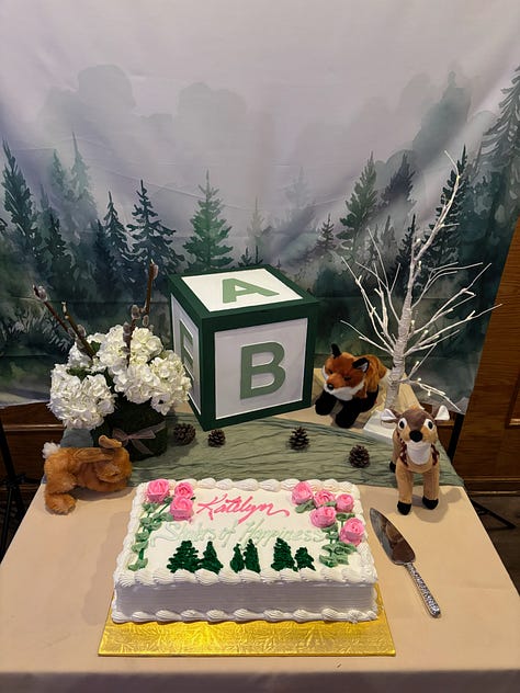 To celebrate, we held a baby shower last month in the theme of her nursery, baby forest animals — perfect for the nature kid who was obsessed with Ranger Rick.