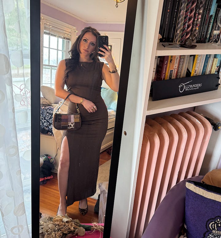 The dress needed to be an earthy color, and it just so happened that a fitted brown maxi dress that I’ve been dying to wear for months was hiding in the back of my closet.